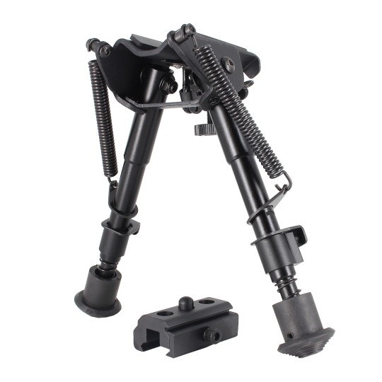 The Blackstorm Firearms 6–9 inch adjustable bipod is a foldable and swivel support designed to enhance firearm stability during shooting. With an adjustable height from 15.24 to 22.86 cm and an included mounting adapter, it offers quick installation and effective adaptation to various shooting positions.