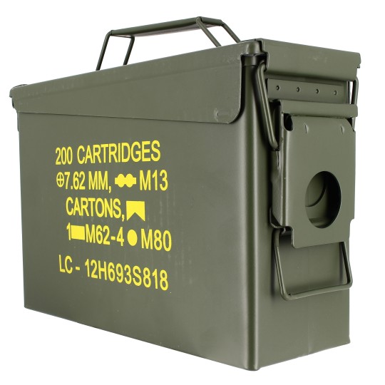 Of genuine military origin, the US M19A1 ammunition box was specifically developed for the transport and storage of 7.62 caliber cartridges, primarily intended for assault rifles. Widely used by numerous units during active service, it remains a reliable and well-known piece of equipment, notably within the arsenal of the United States Marine Corps.