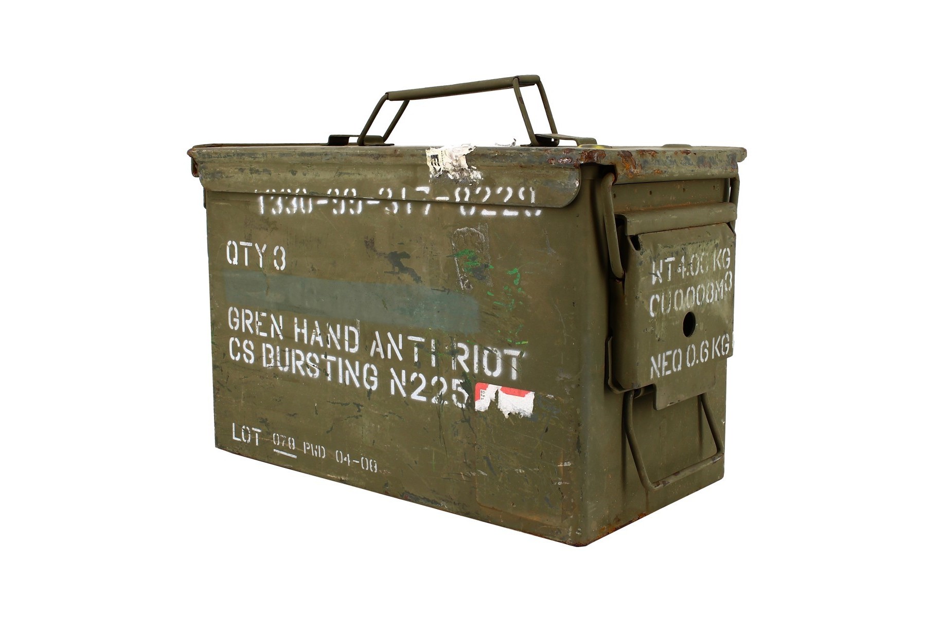 Former US Army steel ammunition box, showing authentic signs of field use while retaining full strength and watertight performance. Equipped with a cam-lock closure and sealing gasket, it is suitable for storage, decorative purposes, or creative reuse.